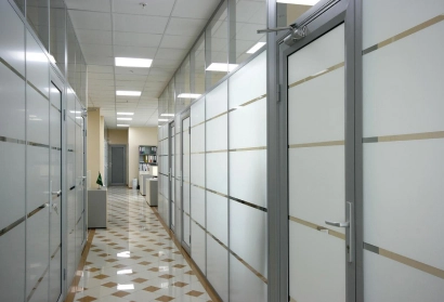 Прозрачные алюминиевые перегородки в офисе