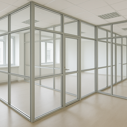 Перегородки из алюминиевого профиля с остеклением помогают создавать светлое пространство без капитального ремонта. Легкий, но прочный каркас и безопасное стекло позволяют изменять планировку, сохраняя естественное освещение.